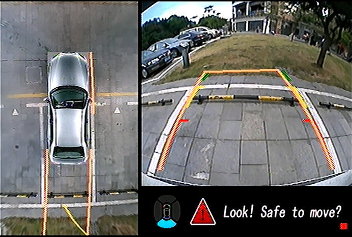 (倒車時定位區(qū)和動態(tài)軌跡線重合+左側(cè)的全景)