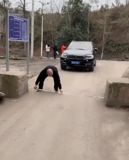 只見大爺拿著卷尺小心翼翼的對(duì)著寶馬車的前臉量了一下,接著又跑到石墩邊上,彎腰量了一下石墩之間的距離!