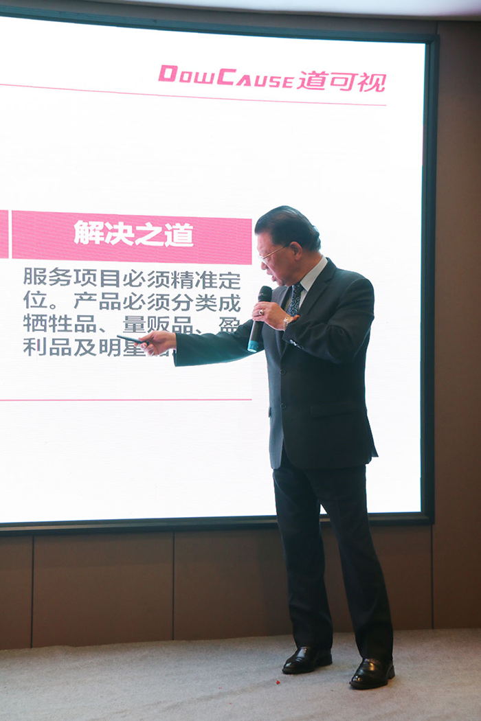 針對當(dāng)下終端門店運(yùn)營者所面臨的種種困惑,蔡老師也提出了解決之道,他指出門店有服務(wù)項目必須精準(zhǔn)定位,產(chǎn)品必須分類成犧牲品、量販品、盈利及明星產(chǎn)品,同時,如果說門店有20%的員工劣根性很強(qiáng),無論如何都無法改變,老板就必須使出殺手锏,不能再將這樣的員工留在店內(nèi)等等。